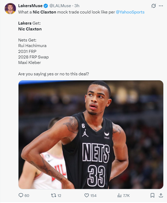 随后多家美媒为湖人列举了三套交易方案,《雅虎体育》模拟的湖人/篮网交易方案——湖人得到:克拉克斯顿;